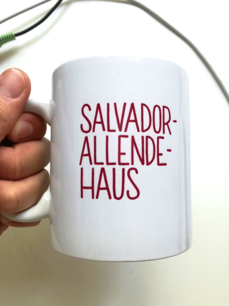 Kaffeebecher Salvador Allende Veröffentlicht am 9. Mai 2020 von soenkeluehring Heute in der Post: Kaffeebecher mit Salvador Allende, den ich mal für das Cover des Jahresprogramms vom Salvador-Allende-Haus gezeichnet habe, guten Morgen! Teilen mit: Klicke, um auf X zu teilen (Wird in neuem Fenster geöffnet) X Klick, um auf Facebook zu teilen (Wird in neuem Fenster geöffnet) Facebook Gefällt mir Wird geladen … Ähnliche Beiträge