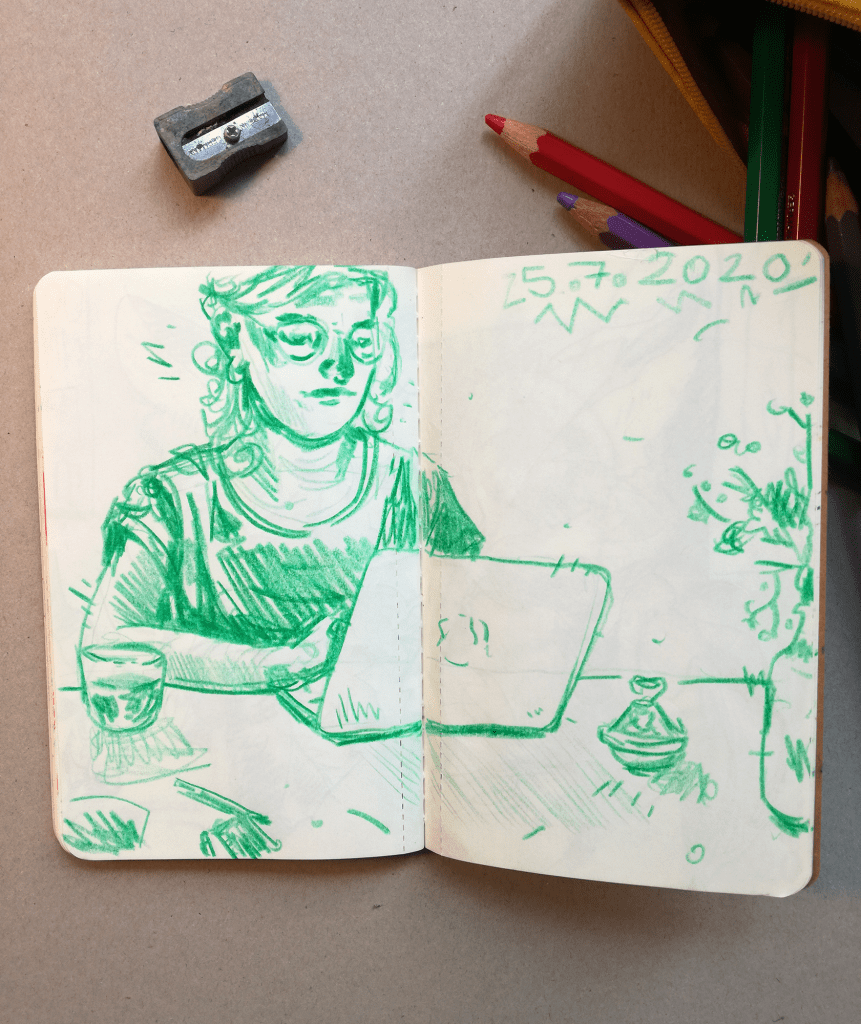 Skizzenbuch Veröffentlicht am 10. Juli 2020 von soenkeluehring Ein paar Skizzenbuchseiten aus den letzten Tagen Teilen mit: Klicke, um auf X zu teilen (Wird in neuem Fenster geöffnet) X Klick, um auf Facebook zu teilen (Wird in neuem Fenster geöffnet) Facebook Gefällt mir Wird geladen … Ähnliche Beiträge