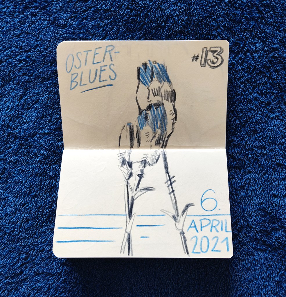 Osterblues im Skizzenbuch Veröffentlicht am 6. April 2021 von soenkeluehring Teilen mit: Klicke, um auf X zu teilen (Wird in neuem Fenster geöffnet) X Klick, um auf Facebook zu teilen (Wird in neuem Fenster geöffnet) Facebook Gefällt mir Wird geladen … Ähnliche Beiträge
