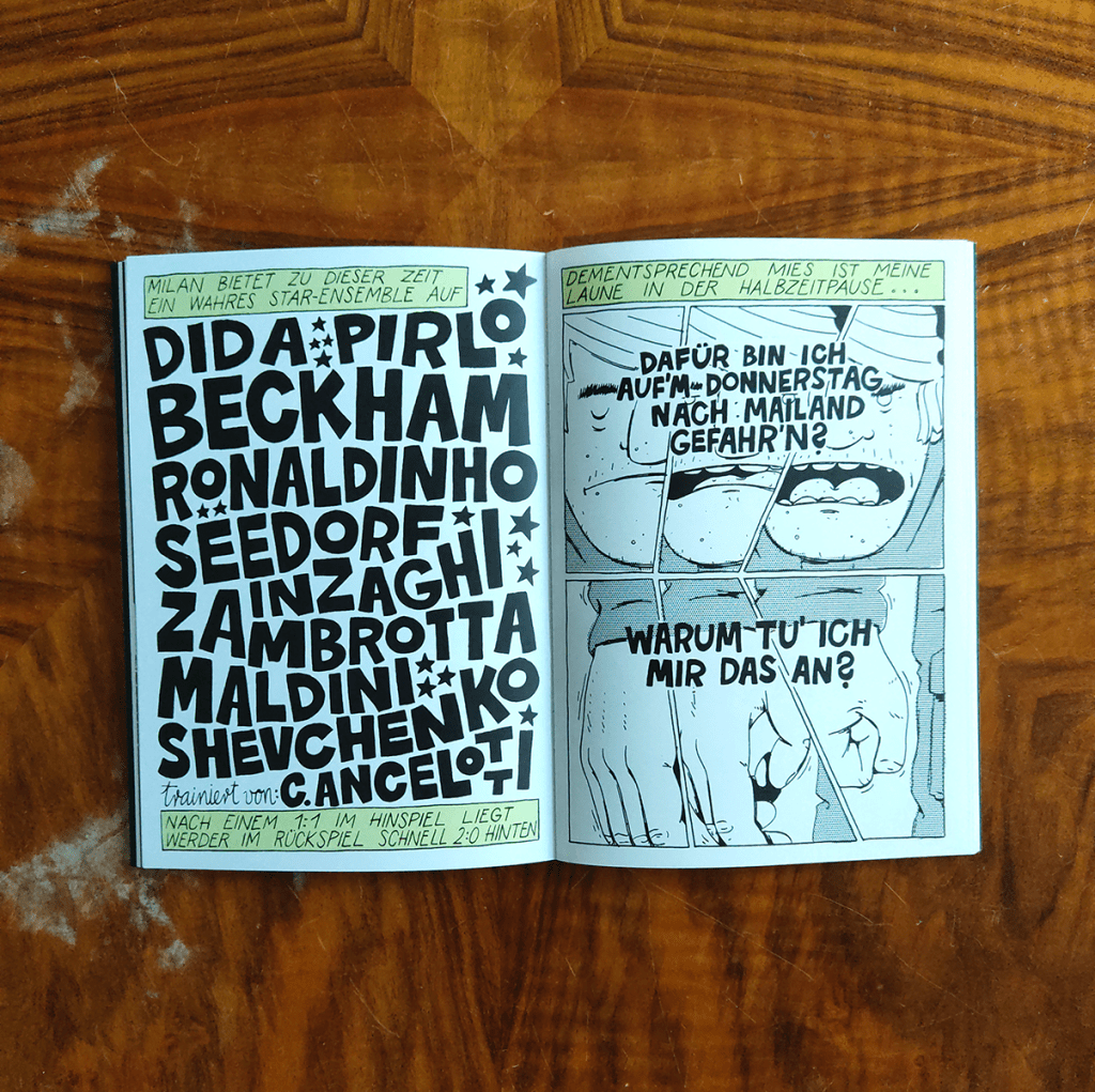 Blick ins Heft Veröffentlicht am 21. Juli 2021 von soenkeluehring Für alle, die noch kein Heft haben und sich vielleicht auch nichts unter „Spielberichten in Comicform“ vorstellen können, ein kleiner Blick ins Heft. Teilen mit: Klicke, um auf X zu teilen (Wird in neuem Fenster geöffnet) X Klick, um auf Facebook zu teilen (Wird in neuem Fenster geöffnet) Facebook Gefällt mir Wird geladen … Ähnliche Beiträge